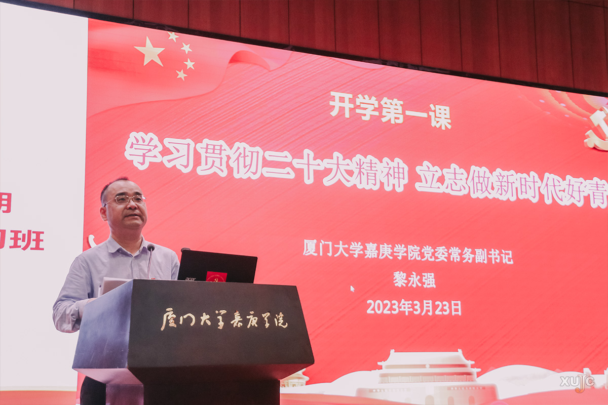 3月23日,厦门大学嘉庚学院党委常务副书记黎永强在主楼群3号楼大报告厅以“学习贯彻二十大精神,立志做新时代好青年”为题,为学生讲授“开学第一课”,并对学生提出殷切希望。