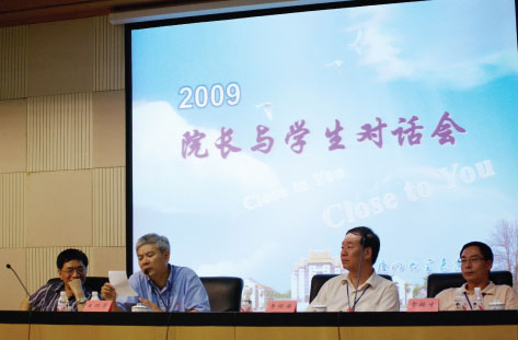 每年,院长与学生进行一次面对面的对话,畅所欲言的沟通和交流,是我院的传统。5月13日晚,2009年院长与学生对话会在主楼群三号楼小报告厅举行。我院院长王瑞芳,党委常务副书记、副院长鲁同安,副院长戴一峰,副院长雷锐生一起出席会议,认真听取了学生的意见和建议。