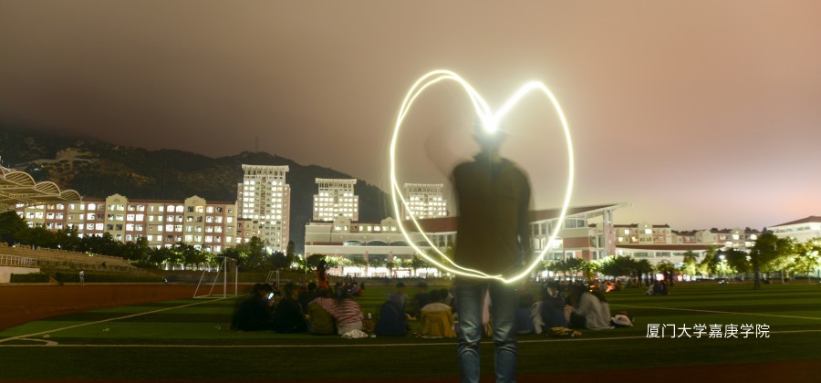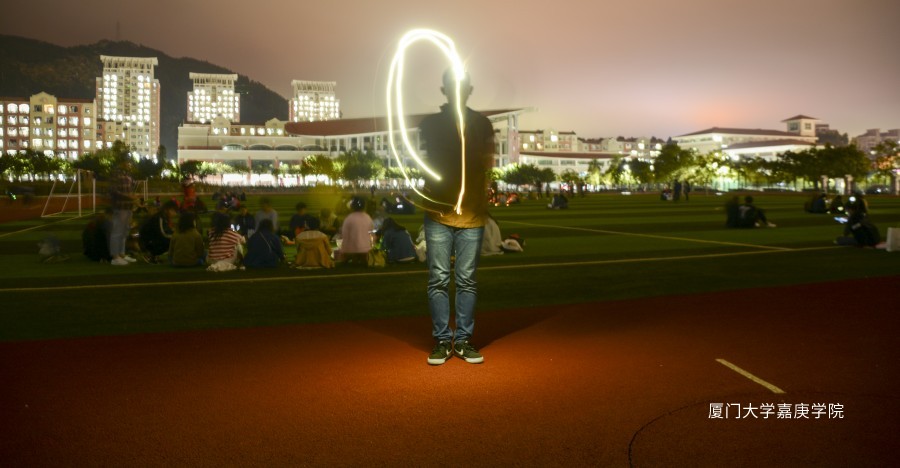 一辆警车在操场上缓缓行驶而过,在慢快门的相机上留下了一道美丽的弧线,为女生节灯会添彩,祝所有女生节日快乐,永远美丽