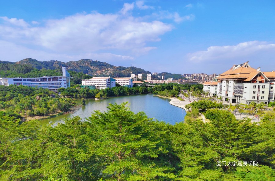 栖霞湖像爱心一样坐落于楼群间,诠释着嘉庚以学生为中心的理念。