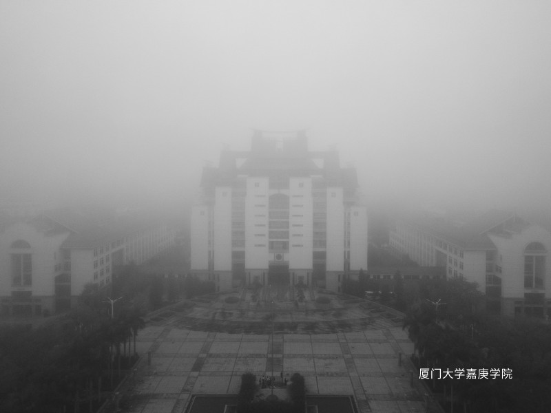 当薄雾悄然降临嘉园的时候,这所美丽的学校便披上了一层柔和而朦胧的纱衣,仿佛整个世界都被温柔地拥抱在了怀中。
