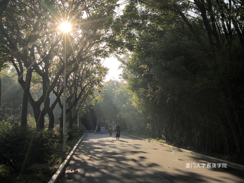 刚来到嘉军训时,每天都要六点多起床,嘎吱嘎吱骑着小绿从南区赶往北区。某一天早上,在到训练场地前,突然回头看到阳光倾泻