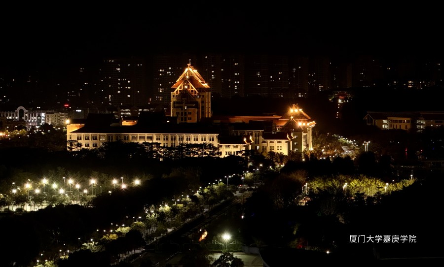 夜幕垂落,厦门大学嘉庚学院主楼群在夜色中尽显恢宏。