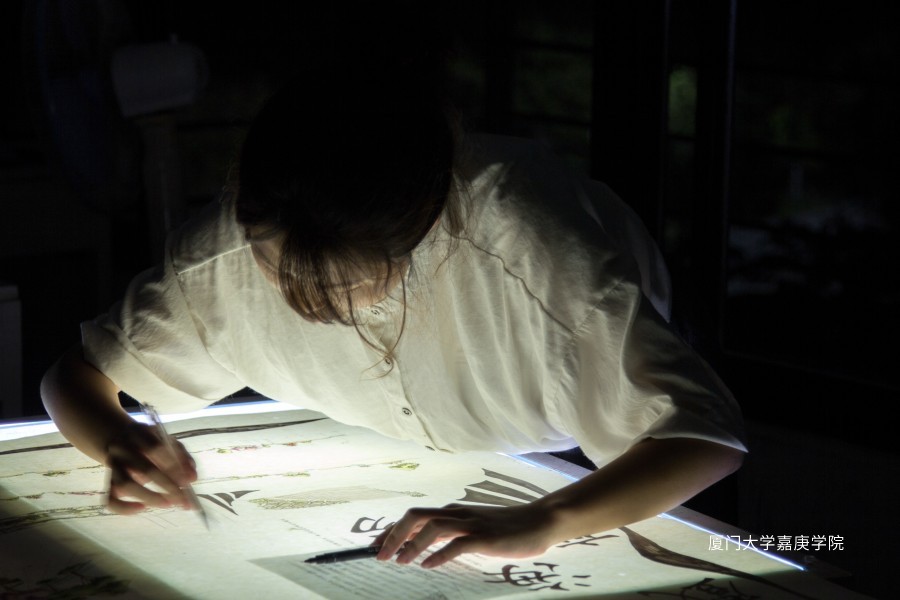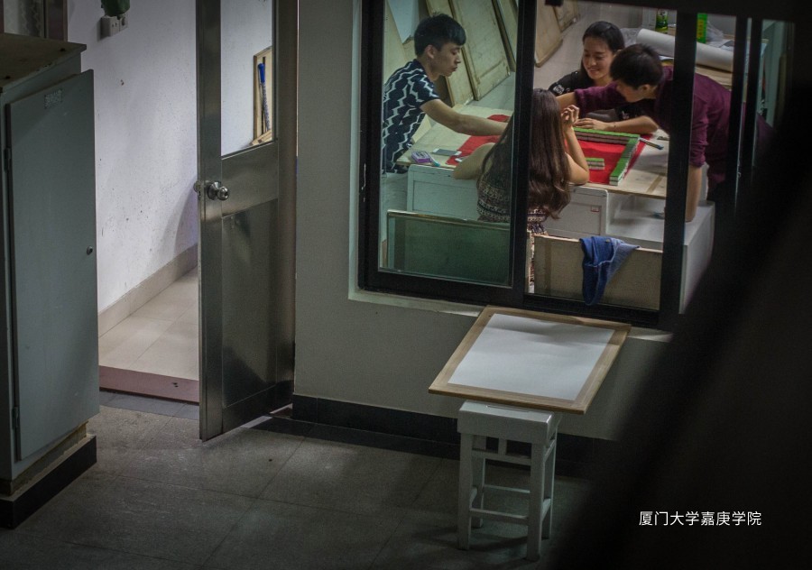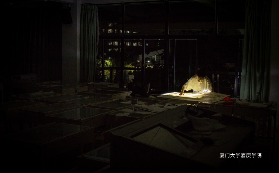 某个周六晚上,五楼的一间教室里,一位同学正默默地赶着图。
