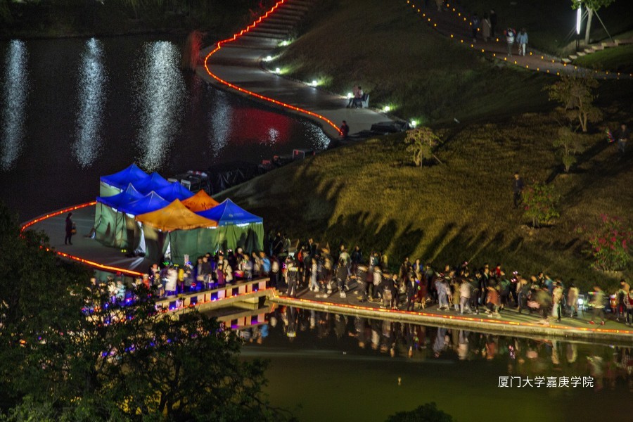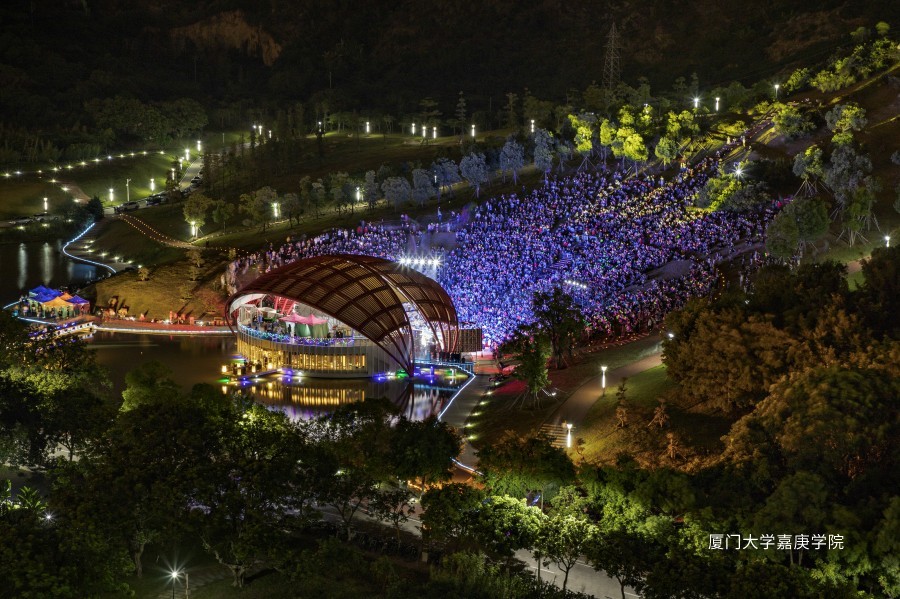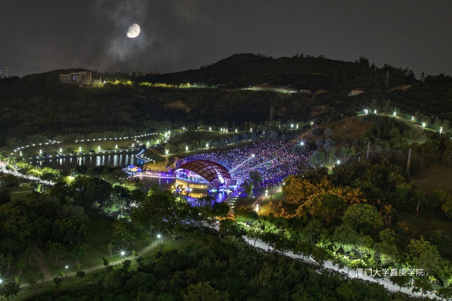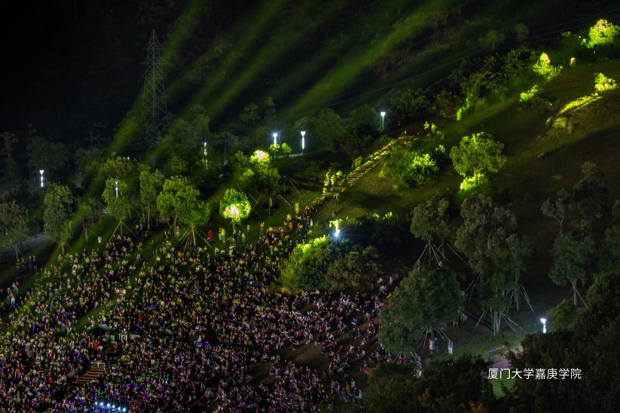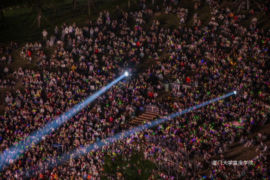 舞台的灯光和观众手里的荧光棒交相辉映。