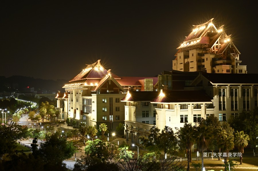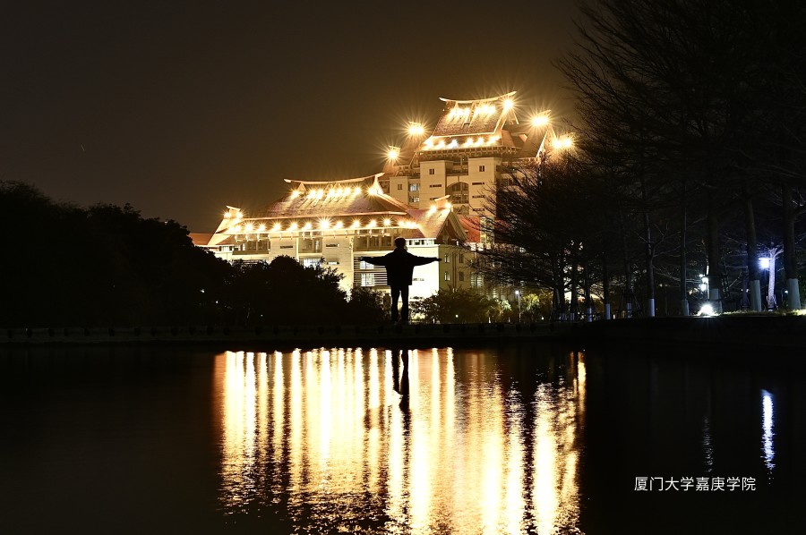 看到灯舞推文,欣然起步,舍友亦未寝,相与步于“嘉庚”。