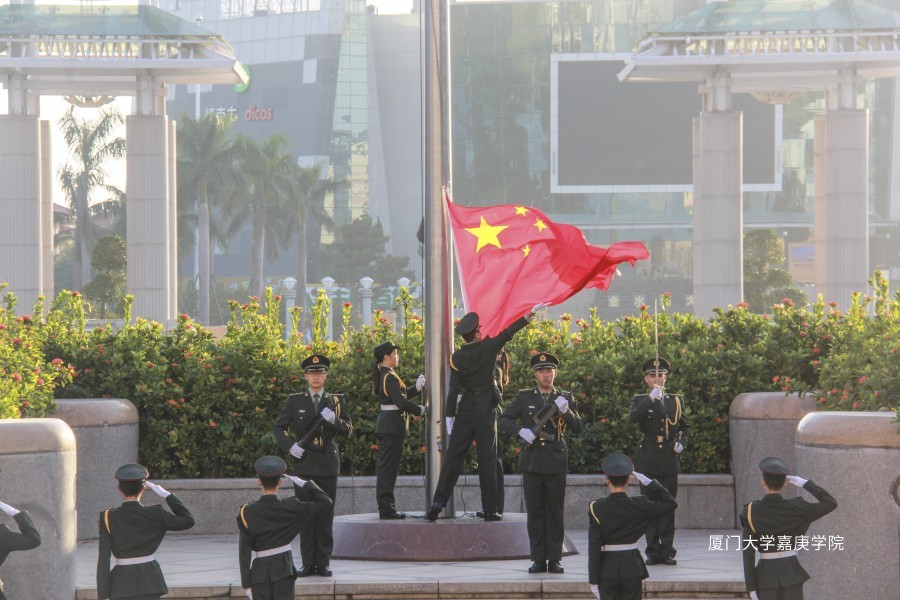 在“嘉庚”,有这样一群人,他们不是军人却有着军人的风采,他们用军人的标准严格要求自己,承担起了光荣的升旗任务,也将一份浓浓的爱国情怀传递了下去。他们,就是厦门大学嘉庚学院国旗护卫队。