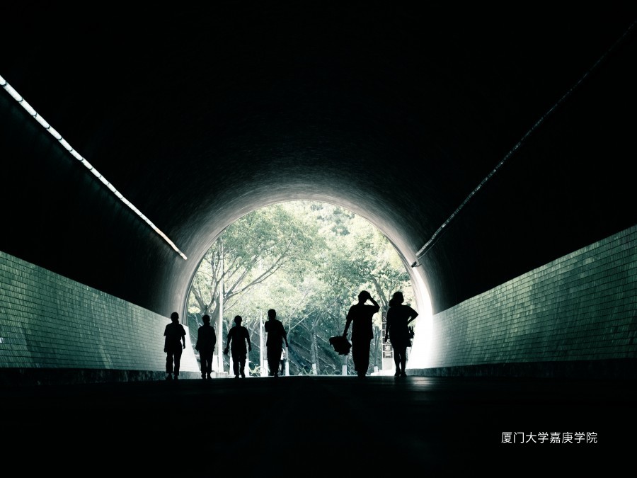 学校隧道里的多人剪影,好像在给我们带来了希望之光。
