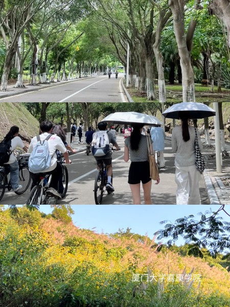 与嘉园的故事正值精彩,未完待续。嘉庚大道,嘉园的主干道,道路两侧是青葱的树木,都说这里是校园影视的绝佳取景处。蝉鸣声声,骄阳刺眼,扎根知识书海时莫忘劳逸结合,观赏明媚的嘉园景色,莫忘珍惜当下,亦人亦物亦景。人生漫漫亦灿灿,愿“嘉”人朝气蓬勃,前途似锦。