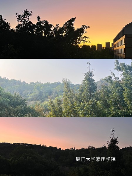 好看的风景总是恰巧出现在学生时代,嘉园的朝霞和落日余晖永远不会让人失望。宿舍阳台可称最佳观景点之一,“嘉”人在宿舍就能够幸福地拥抱太阳的东升西落,如此温柔,尤为人间浪漫。阳光很好,洒向嘉园的每个角落,荷花池、球场、自习室……穿过草木间隙照亮“嘉”人风华正茂的青春。