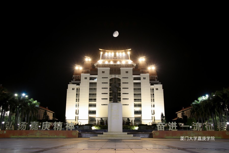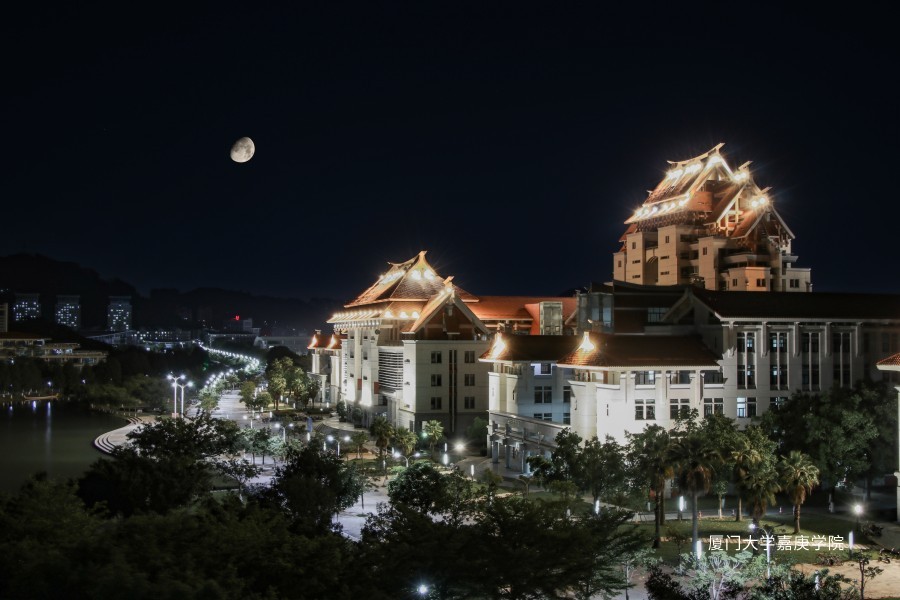 当夜幕低垂,盈凸月点缀天空时,亮灯的主楼群在黑暗中散发出迷人的光芒。如同一颗闪耀的明星,照亮着“嘉”园的面孔。