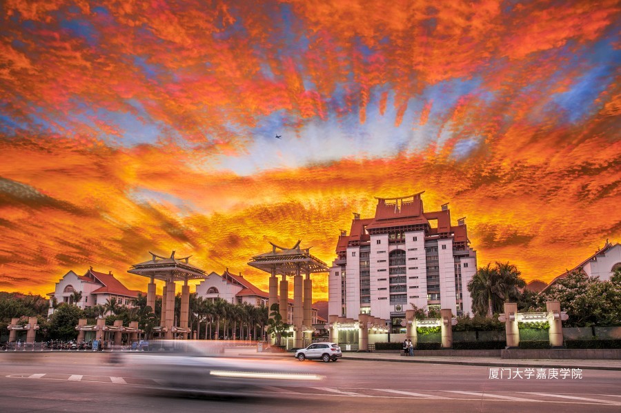 火烧云映红半边天,预示着嘉庚学院的事业红红火火,蒸蒸日上。