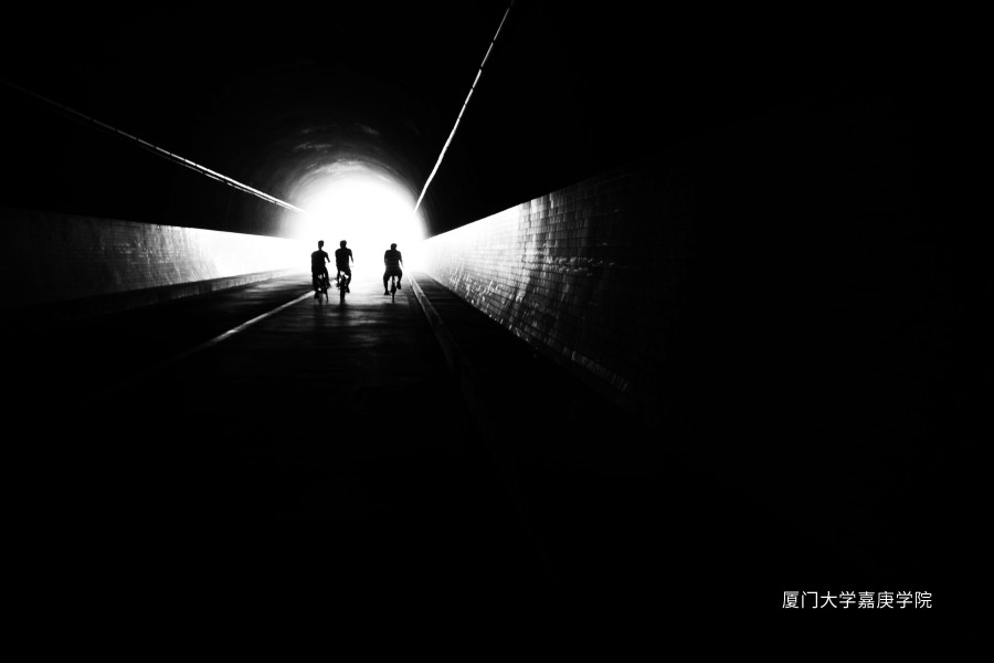 拍摄过无数次的保研隧道,没有一次满意的。一次偶然下课时分路过保研隧道,几位同学骑车搭伴路过,拍下了这幅图。