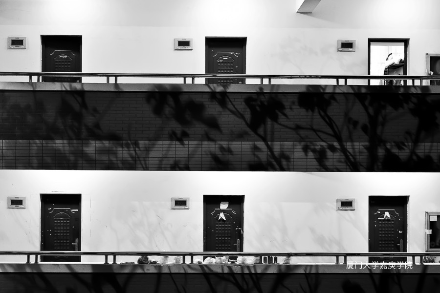 二月寒冬时节宿舍都大门紧闭,唯有一个宿舍开着门。