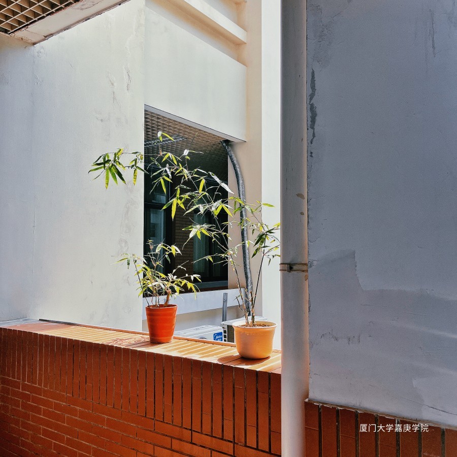 主一走廊的两小盆盆栽,虽然只有几缕阳光透过墙面过来;