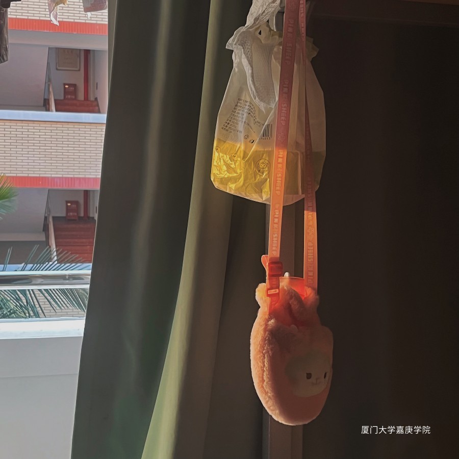 当最后一抹落日的余晖,透过阳台,照在舍友的粉色毛绒水壶上;