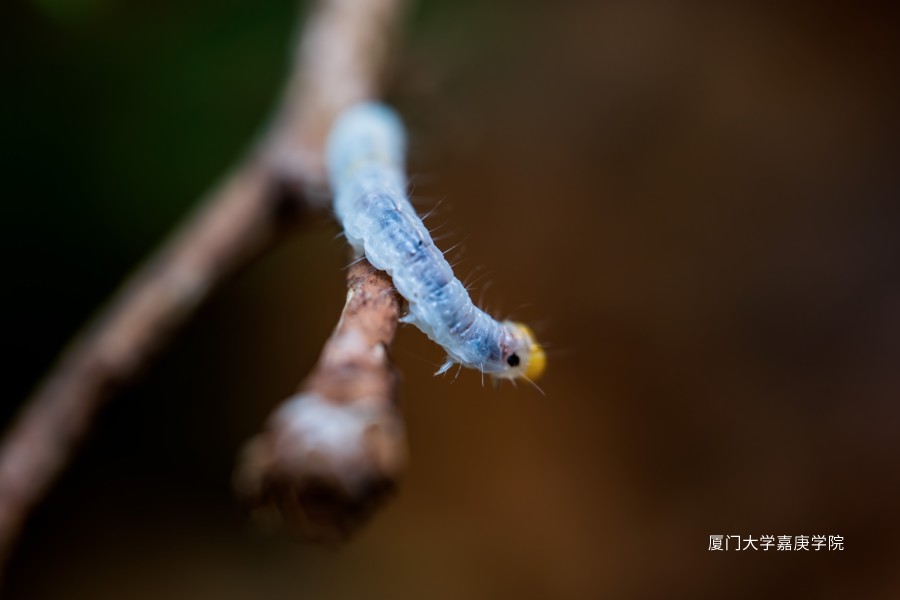 湖畔的枯枝落叶里,一只晶莹剔透的小虫抬头