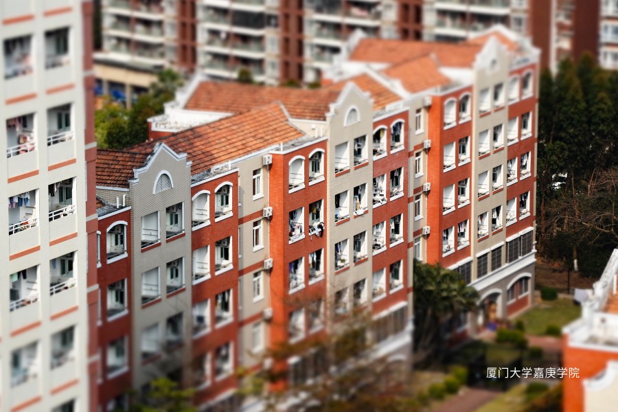 在移轴摄影的魔法下,嘉庚学院的校园景色被缩影成充满想象力的微缩世界