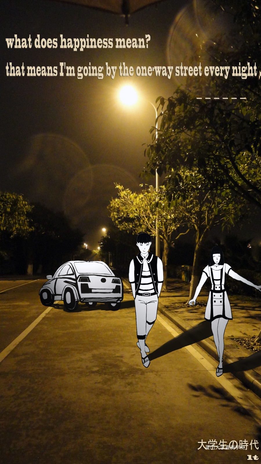 学校夜晚小道