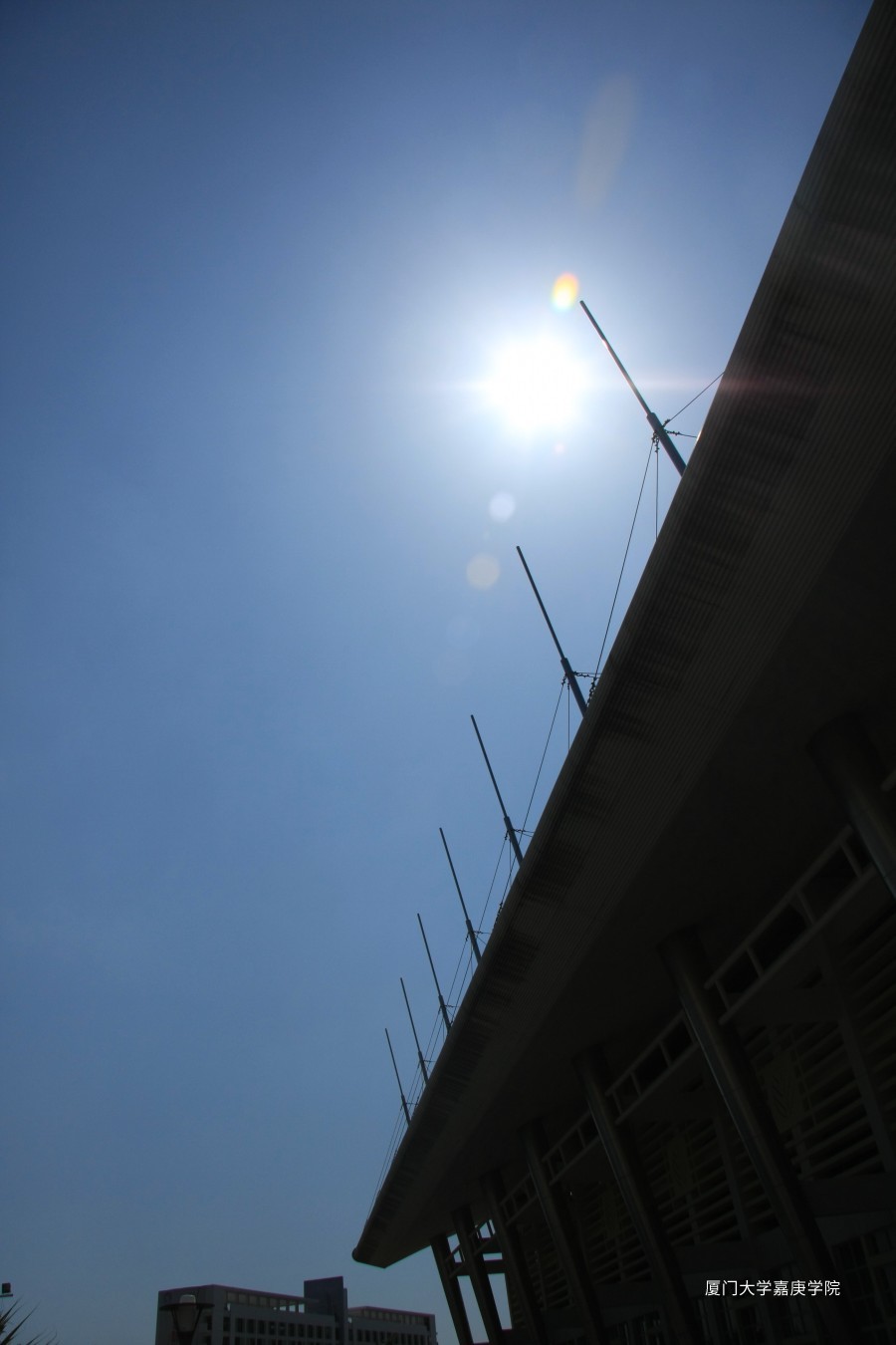 流线的顶部,铝塑板外墙,直指天空的斜拉柱,学校最具有现代感的建筑。
