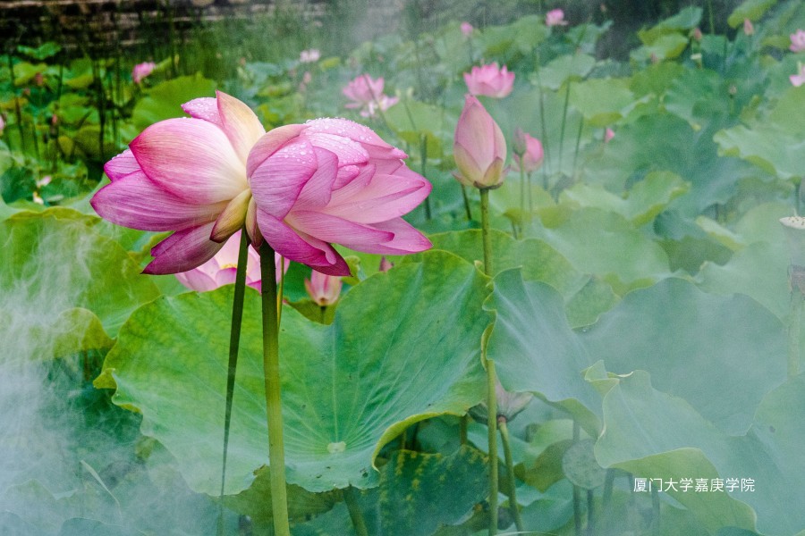 争奇斗艳,由四副图片组成,它们为嘉庚学院最具代表的四种花卉,分别为黄花风铃木、荷花、玉兰以及凤凰木。它们姿态各异,色彩夺目,表现出了嘉庚学院的多彩校园生活。