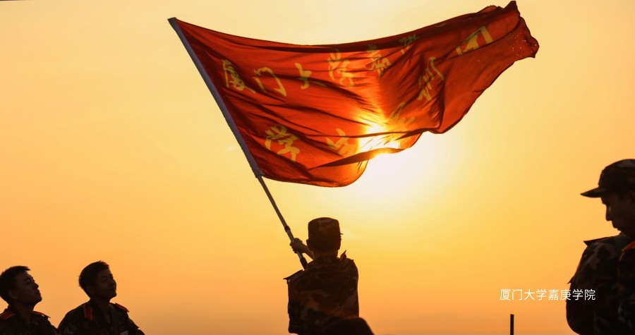 迎着朝霞,挥舞旗帜,我立于山顶,心中的梦想不曾忘记