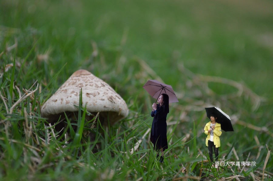 雨下,蘑菇有自己的帽子,我们也有伞遮挡雨点。小蘑菇,我悄悄告诉你,不用怕被妈妈知道,雨天的嘉也很美哟~