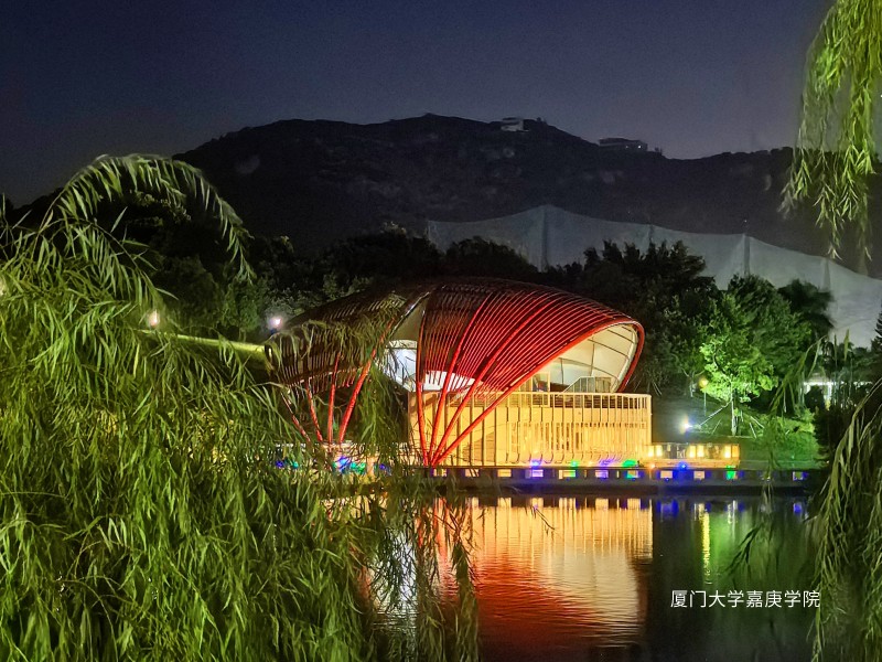 当夜幕如一块巨大的黑色绸缎,温柔地覆盖了整个湖面,“小巨蛋”便宛如一颗璀璨的明珠,在夜色中熠熠生辉。