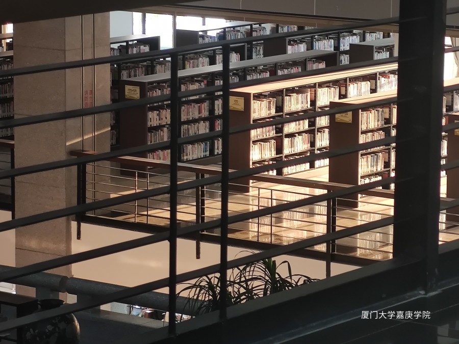 准备离馆之时,夕阳透过窗撒在图书馆二楼,一片金碧辉煌。