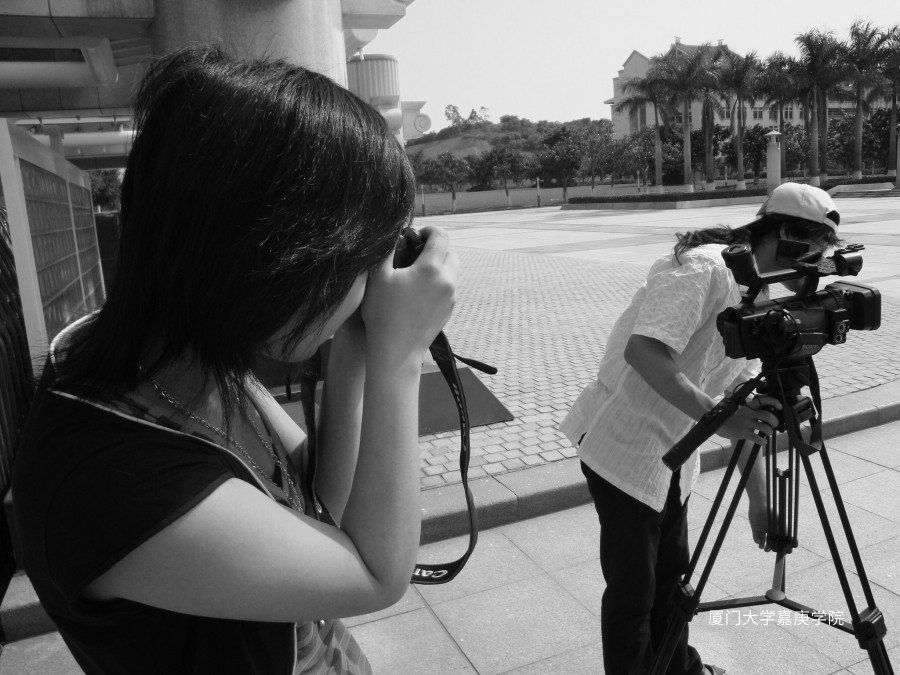 照片的人物是我们身边的那些从事学院新闻工作的同学。照片以一个旁观者的视角试图去体会去理解他们的工作状态,他们的新闻故事。