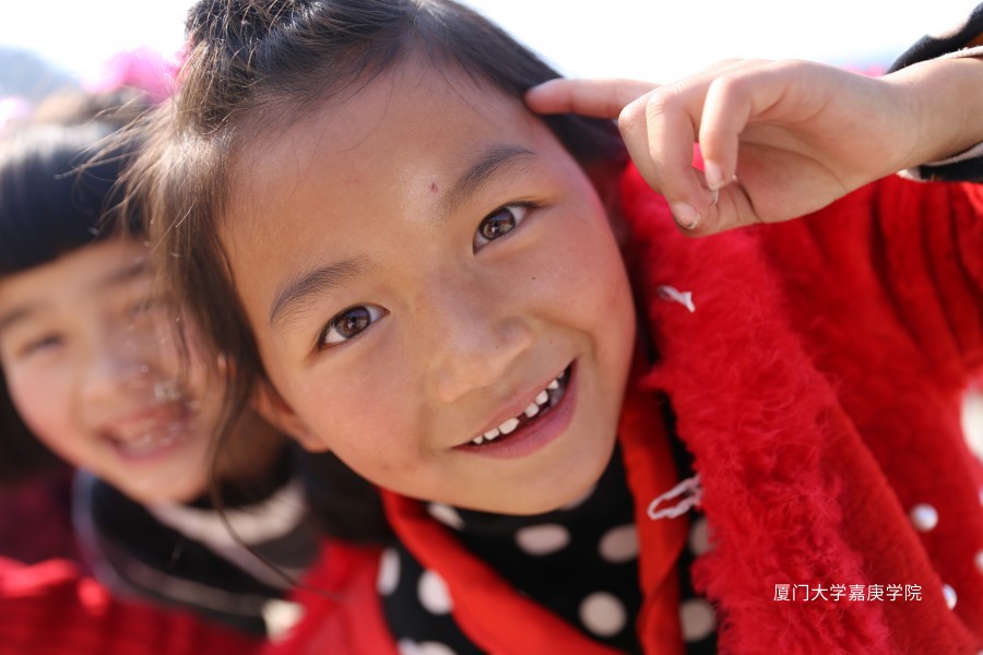 初到学校,拍摄第一张合照时,一个小女孩扭扭捏捏不敢上前