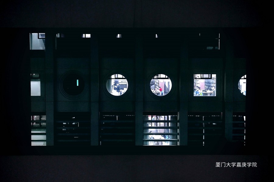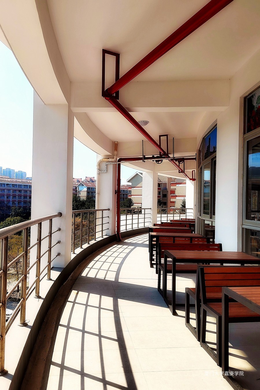 中午在南区食堂四楼外散步消食,圆形的走廊光影分明
