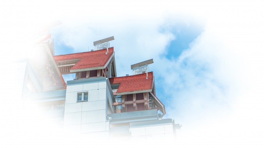 绿色的琉璃瓦,覆在连接主楼群的走廊上方,与主楼屋顶的橙红色交相辉映,相得益彰,别具一章,“嘉”人抬头仰望,绿色的琉璃瓦反射着阳光的关辉,映衬着蓝色天空,心旷神怡。