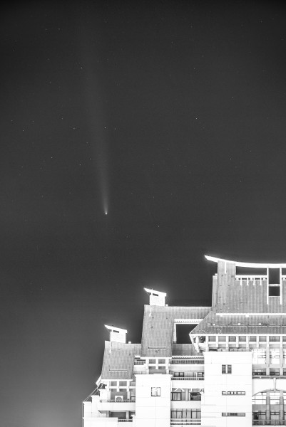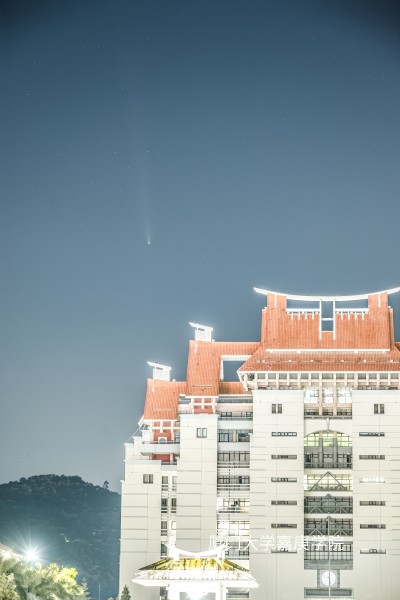 经过一周左右每天傍晚的等待和思考,我拍到了彗星与嘉园的相遇