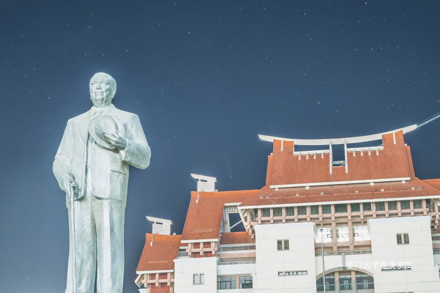 幸运的是,拍摄期间恰逢校主陈嘉庚诞辰150周年,10月21日当晚,夜里最亮的两颗星闪耀在嘉园