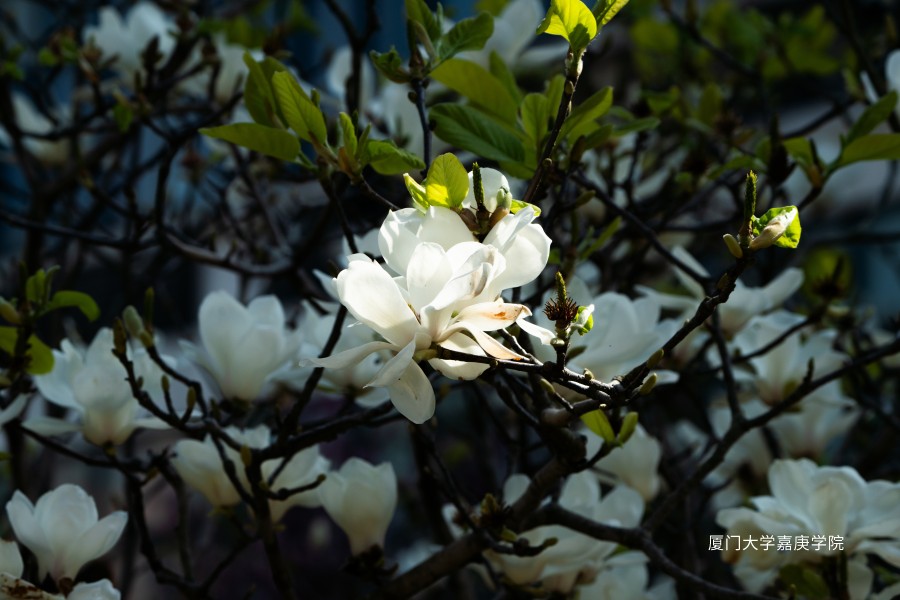 校园中的花朵争相绽放,在适当的光线格外吸引人
