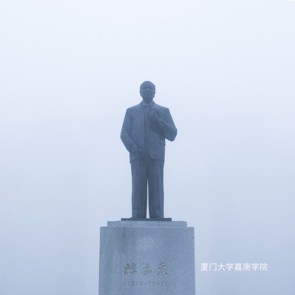 在嘉园的中心,陈嘉庚雕像静默而立,
