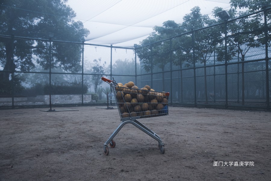 冷色调的画面中、中心一筐暖色的棒球,恰到好处!