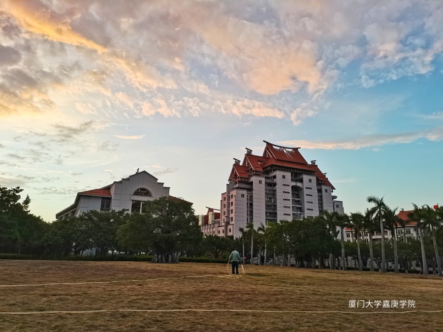 远处的云雾轻拂过嘉庚楼群,橘黄的日落点缀其间,有风经过,停在窗边。这些美好的事物在一瞬间通通向我奔来,嘱咐我要热爱这个“嘉园”。